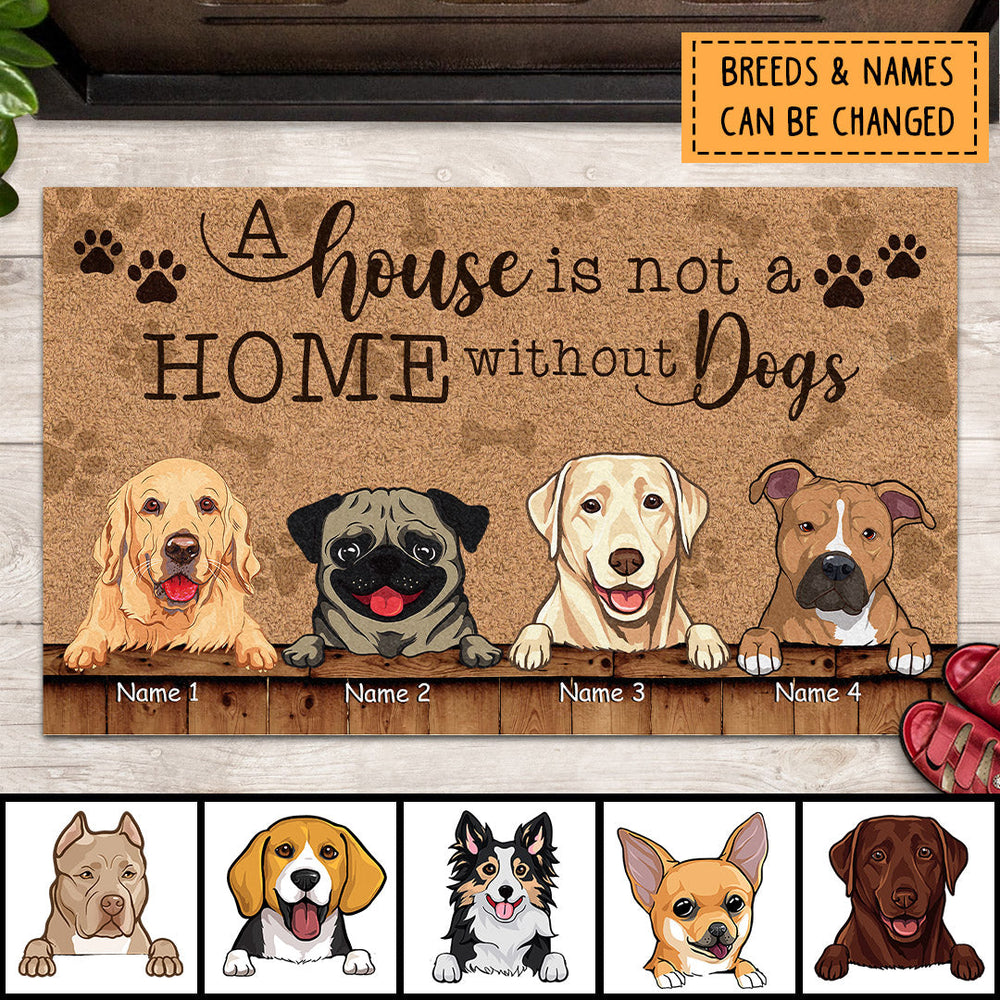 A House Is Not A Home Without Dogs, Pawprints Doormat, Personalized Dog Breeds Doormat