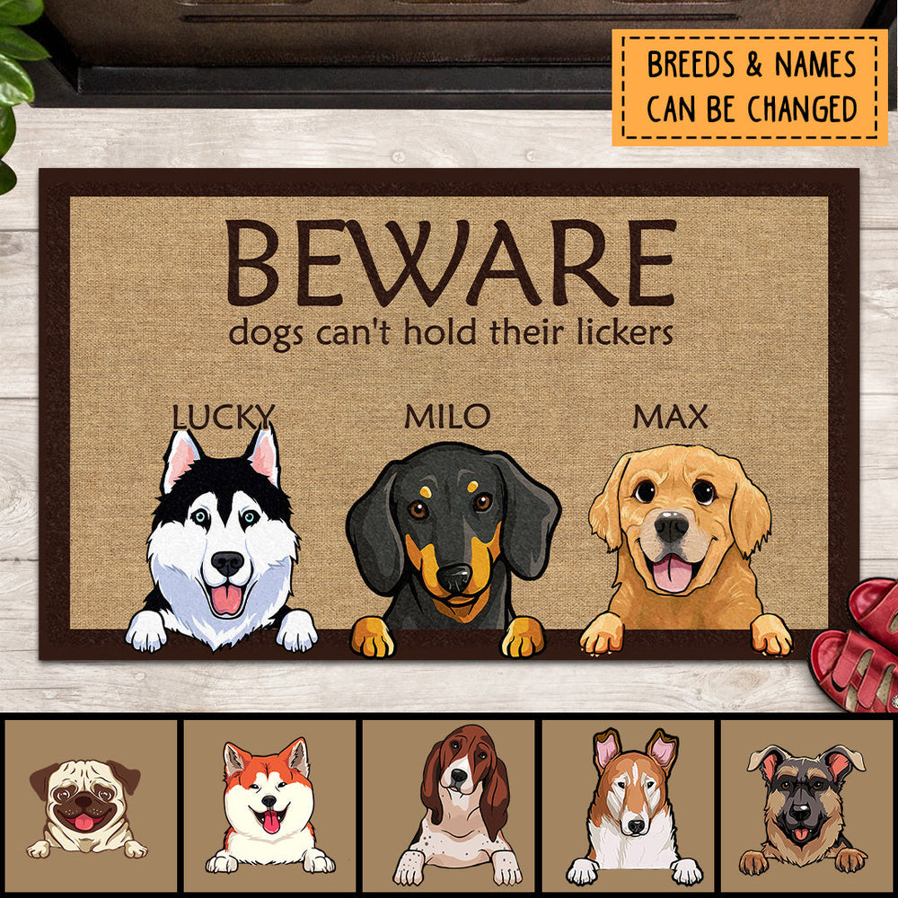 Beware Dogs Can't Hold There Lickers, Dog Lover Gift, Funny Welcome Mat, Gift For Home, Personalized Dog Breed Doormat