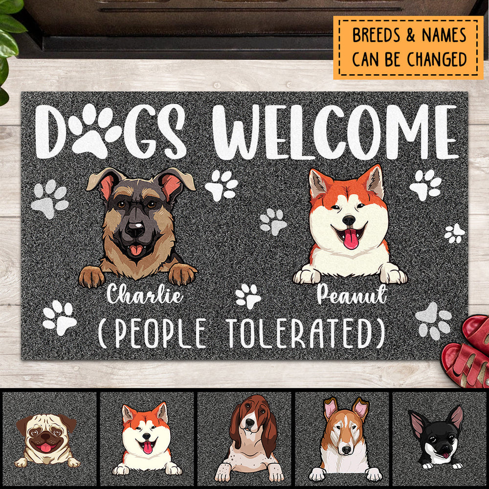 Dogs Welcome Mat, Grey Background With Dog Paws, Gift For Home, Housewarming Gift, Personalized Dog Lover Doormat