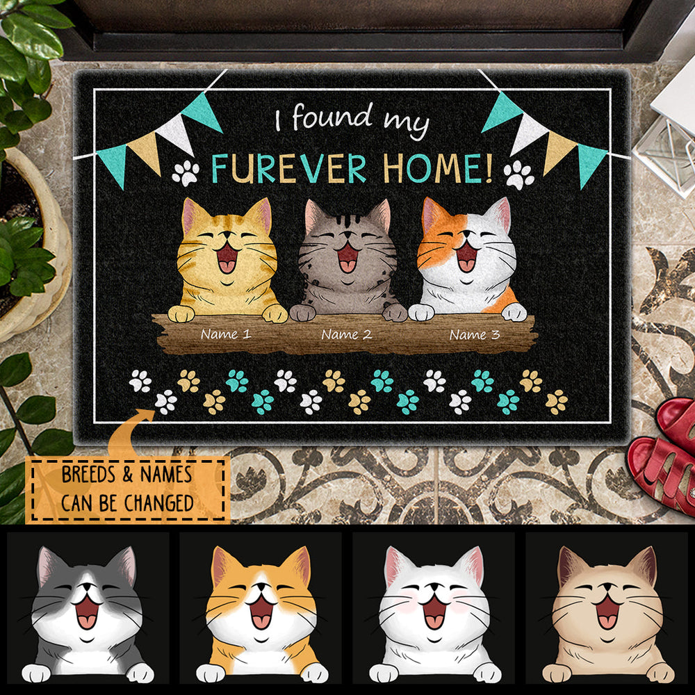 I Found My Furever Home - Laughing Peeking Cats - Personalized Cat Doormat