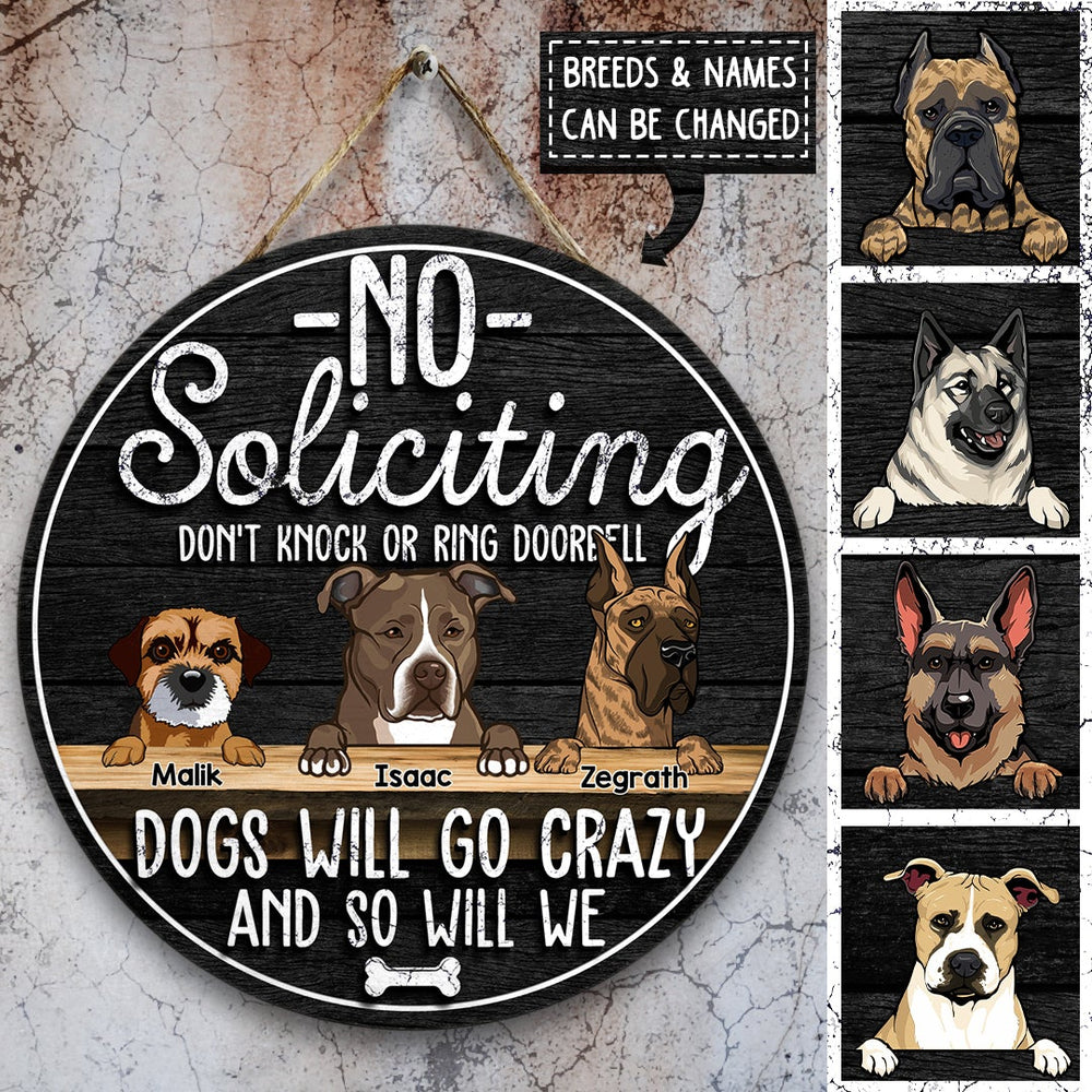 No Soliciting Don't Knock Or Ring Doorbell, Wooden Door Hanger, Personalized Dog Breeds Door Sign, Gifts For Dog Lovers