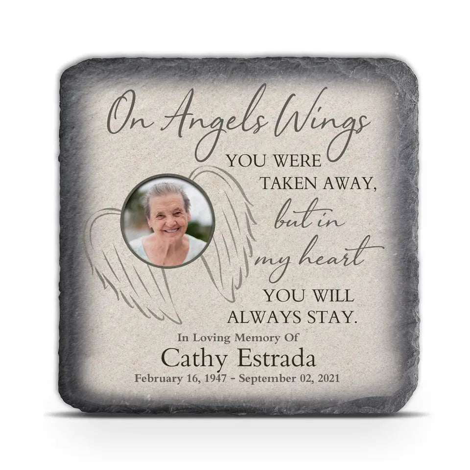 On Angels Wings You Were Taken Away - Personalized Memorial Stone, Memorial Gift Idea, Custom Photo