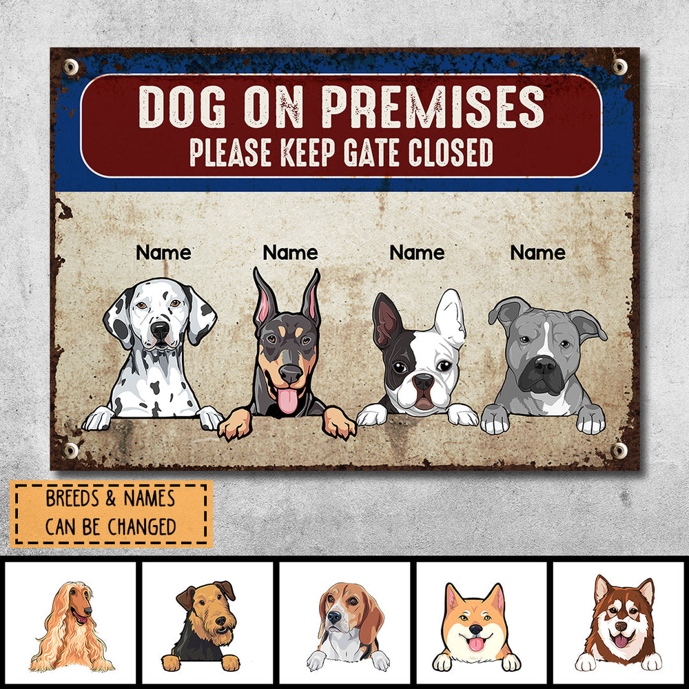 Please Keep Gate Closed Metal Yard Sign, Gifts For Dog Lovers, Dog On Premises Personalized Metal Signs