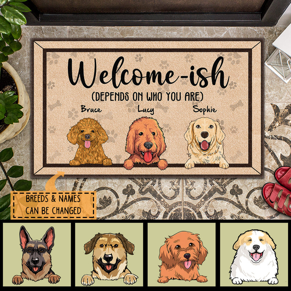 Welcome-ish Depends On Who You Are, Pink Doormat, Personalized Dog Breeds Doormat, Gifts For Dog Lovers, Home Decor