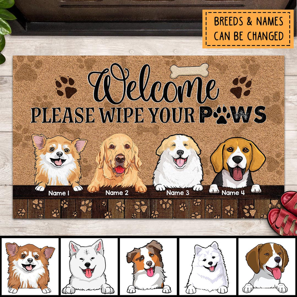 Welcome, Please Wipe Your Paws, Dog Paw With Brown Background, Personalized Dog Lovers Doormat