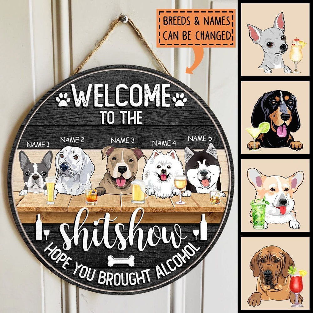 Welcome To The Shitshow - Hope You Brought Alcohol - Personalized Dog Door Sign
